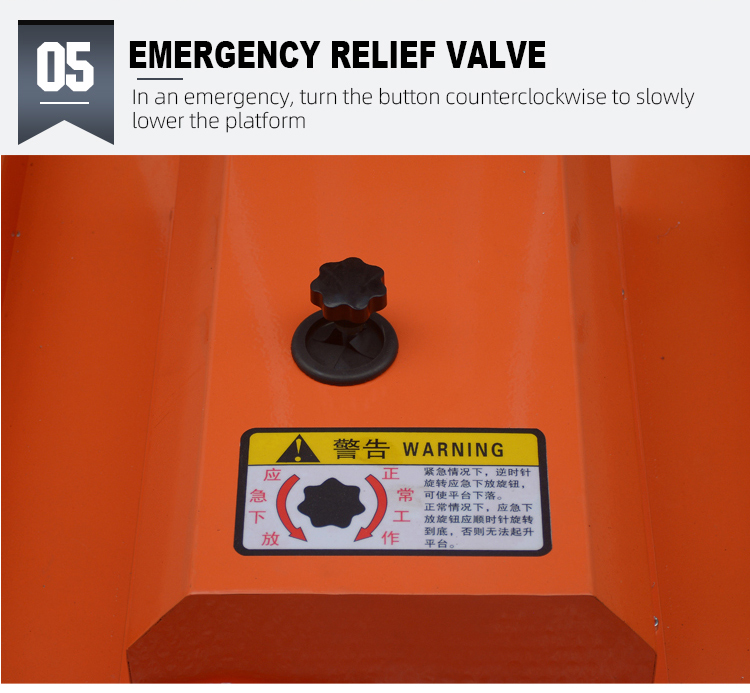 In an emergency, turn the button counterclockwise to slowly lower the platform